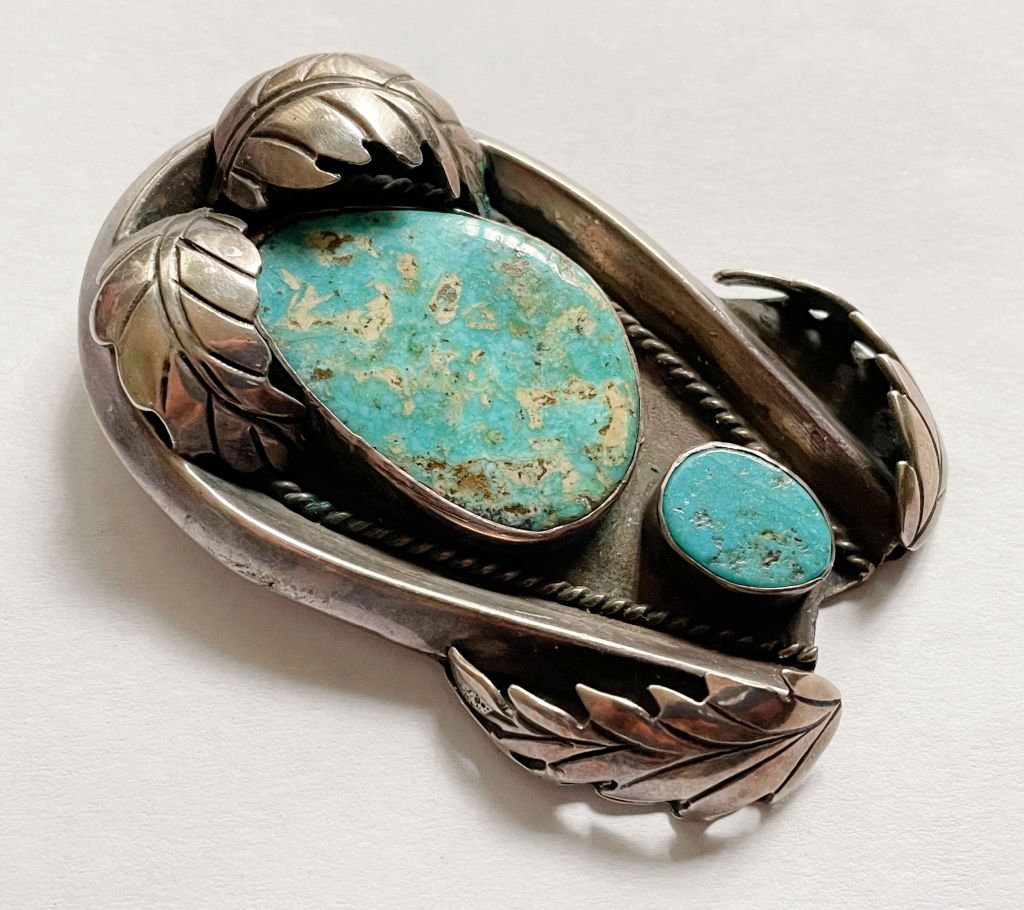 Huge Signed Sterling Silver and Turquoise Pendant – $225