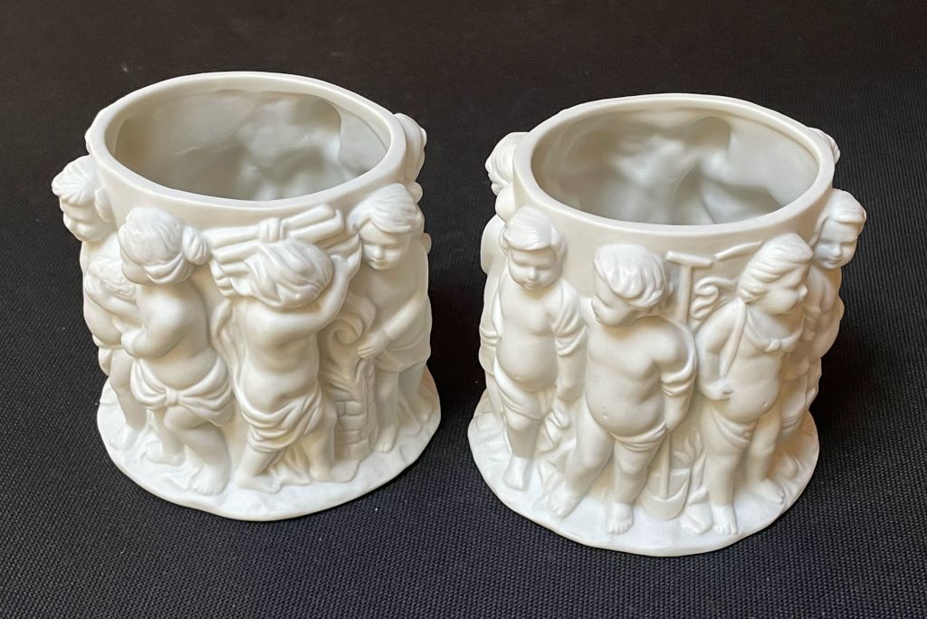 2 Vintage Cherub Bisque Porcelain Vases, Met Museum – $58