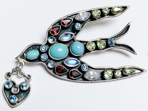 Nicky Butler Sterling Silver Brooch Encrusted with Gemstones – $125