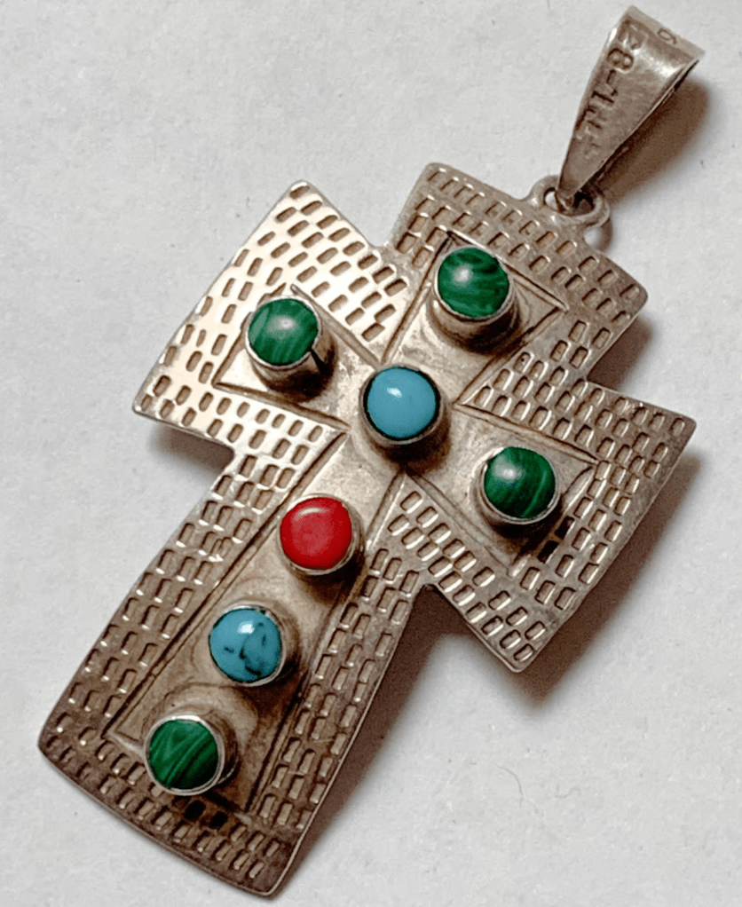 Vintage Mexican Sterling Silver Cross Pendant with Stones – $60