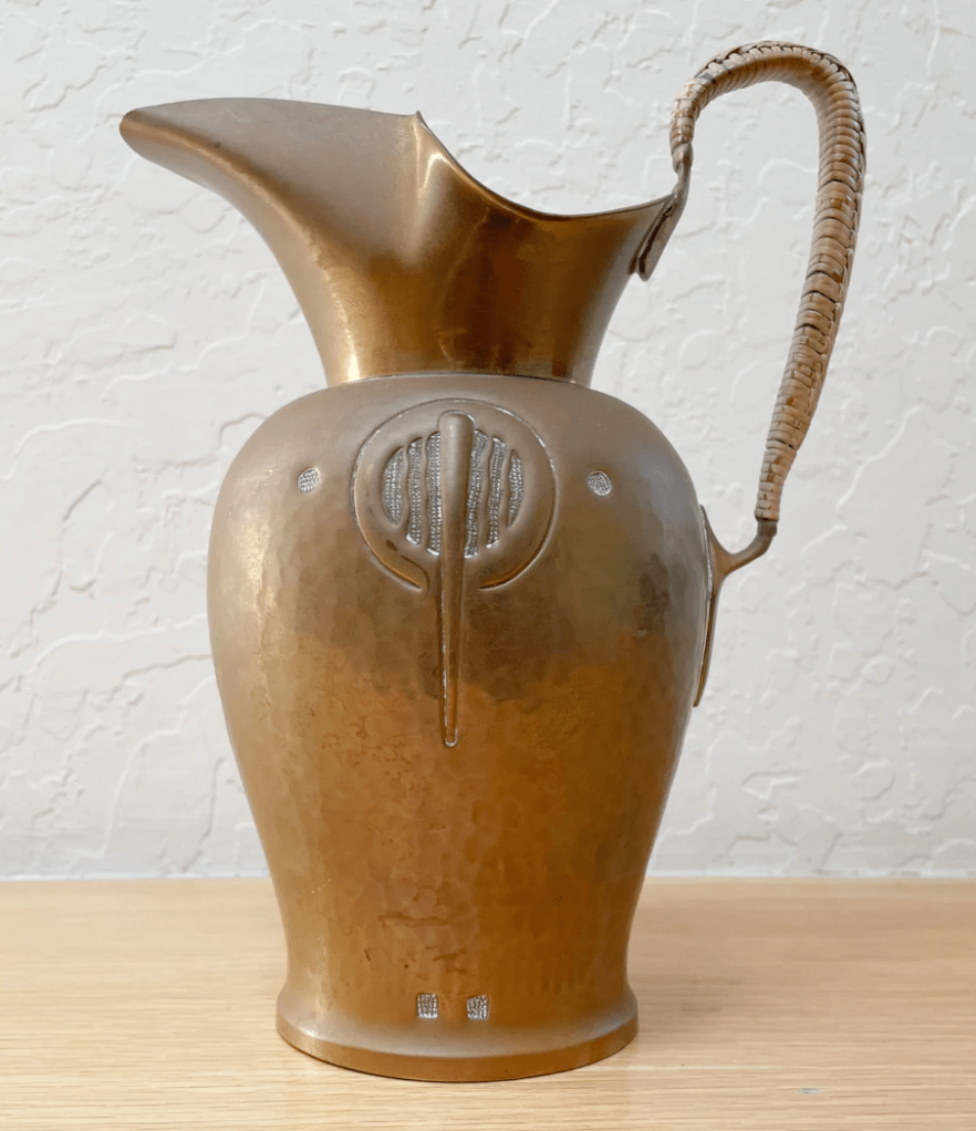 1920s Kayser Copper Jug/Pitcher With Rattan-Covered Handle, Arts & Crafts Era German Jug – $148